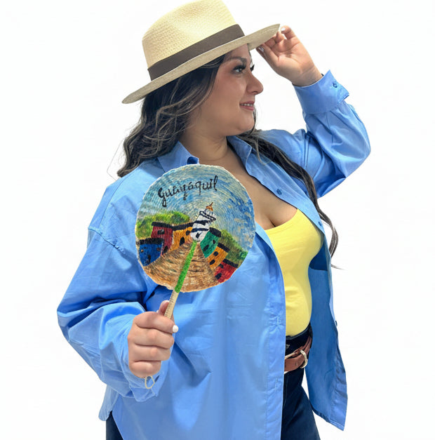 ABANICO PAJA TOQUILLA LAS PEÑAS PINTADA A MANO